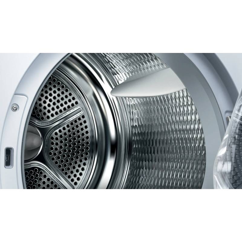 De Bosch WTH85281NL is een warmtepompdroger uit de Serie 4-lijn van Bosch met een vulgewicht van 7 kg. Dit model staat bekend om zijn energiezuinigheid met een A++ label (volgens de oude classificatie) en is uitgerust met technologieën zoals Auto Dry, die oververhitting van je wasgoed voorkomt door de vochtigheid continu te meten. Belangrijkste specificaties Capaciteit: 1 – 7 kg, ideaal voor een gemiddeld huishouden. Energieverbruik: Gemiddeld 212 kWh per jaar. Geluidsniveau: 65 dB, wat relatief stil is voor een droger. Filtersysteem: Voorzien van een EasyClean filter voor eenvoudige reiniging van de condensor. Extra functies: Inclusief trommelverlichting, een wolkorf voor kwetsbare items en een condenswaterafvoerset om het water direct naar de afvoer te leiden. Programma’s en Bediening De droger beschikt over diverse speciale programma’s, waaronder: SuperKort 40 min: Voor een snelle droogbeurt van kleine ladingen. Speciale programma’s: Mix, Sport, Blouses/Overhemden, Dons en een tijdprogramma warm. Anti-vibratie ontwerp: De zijwanden zijn zo ontworpen dat de machine stabieler staat en minder trilt. LED-display: Toont de resterende tijd en biedt opties voor startuitstel tot 24 uur.