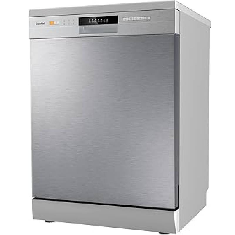 De Comfee CDWPF1201PS is een vrijstaande vaatwasser met een capaciteit van 12 couverts, een roestvrijstalen afwerking en een geluidsniveau van 49 dB. Het apparaat biedt diverse functies, waaronder een snelle wascyclus van 30 minuten en een extra droogfunctie.