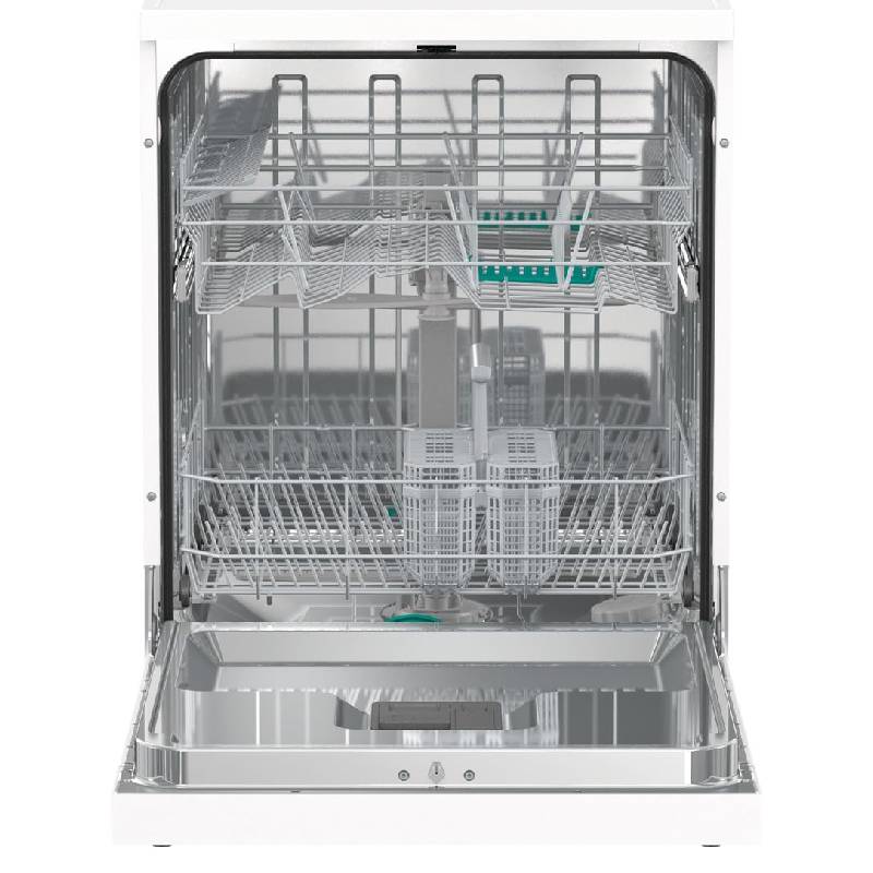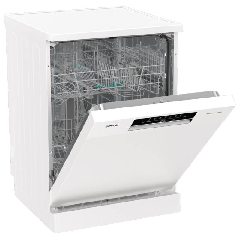 De Gorenje GS642E90W is een vrijstaande vaatwasser van 60 cm breed met ruimte voor 13 couverts. Het apparaat heeft energieklasse E en een geluidsniveau van 47 dB, wat overeenkomt met geluidsklasse C.