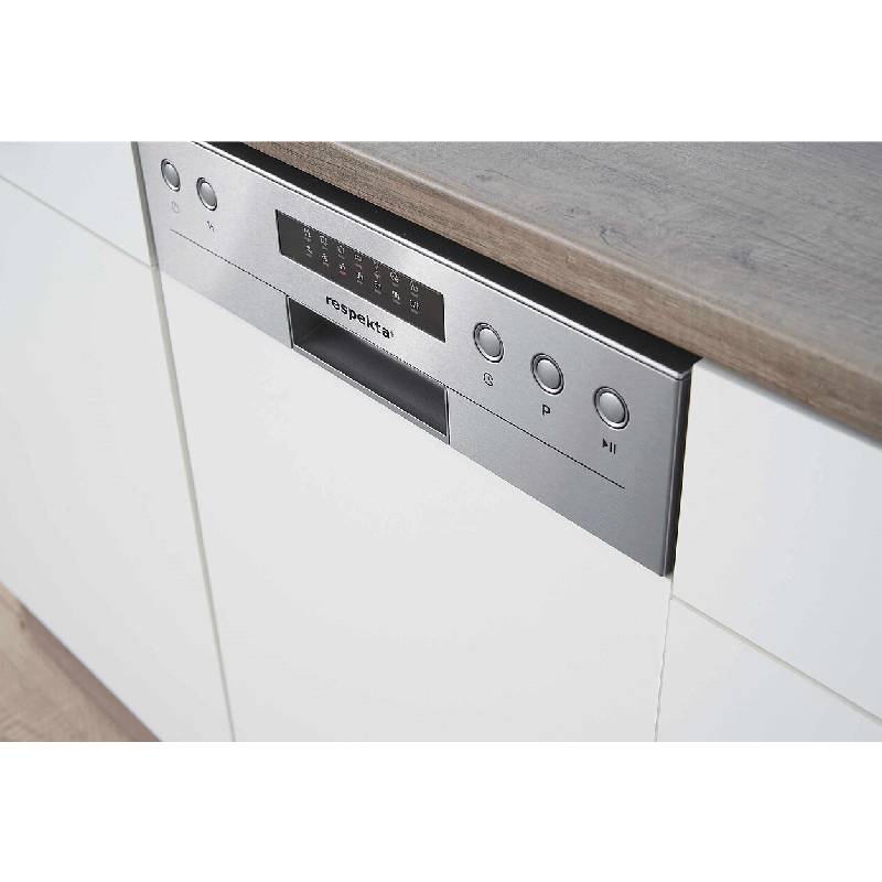 De Respekta GSP45TIDM is een deels geïntegreerde vaatwasser van 45 cm breed, die geschikt is voor kleinere keukens of huishoudens. De vaatwasser biedt plaats aan 9 couverts en beschikt over een flexibele bestekmand en een verstelbare bovenkorf.