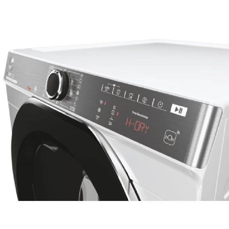 De Hoover NR4 H7A2TCBEX-S is een slanke, vrijstaande warmtepompdroger met een vulgewicht van 7 kg en slimme functionaliteiten via de hOn-app.