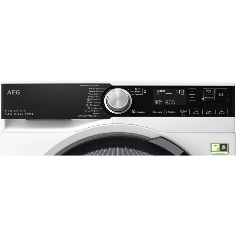 De AEG LR9W80600 is een AEG Serie 9000 AbsoluteCare® voorlader wasmachine met een capaciteit van 10 kg, energielabel A, en een maximaal centrifugeertoerental van 1551 RPM. De machine maakt gebruik van innovatieve technologieën zoals SoftWater® en ProSteam® om kleding te beschermen en te verzorgen.