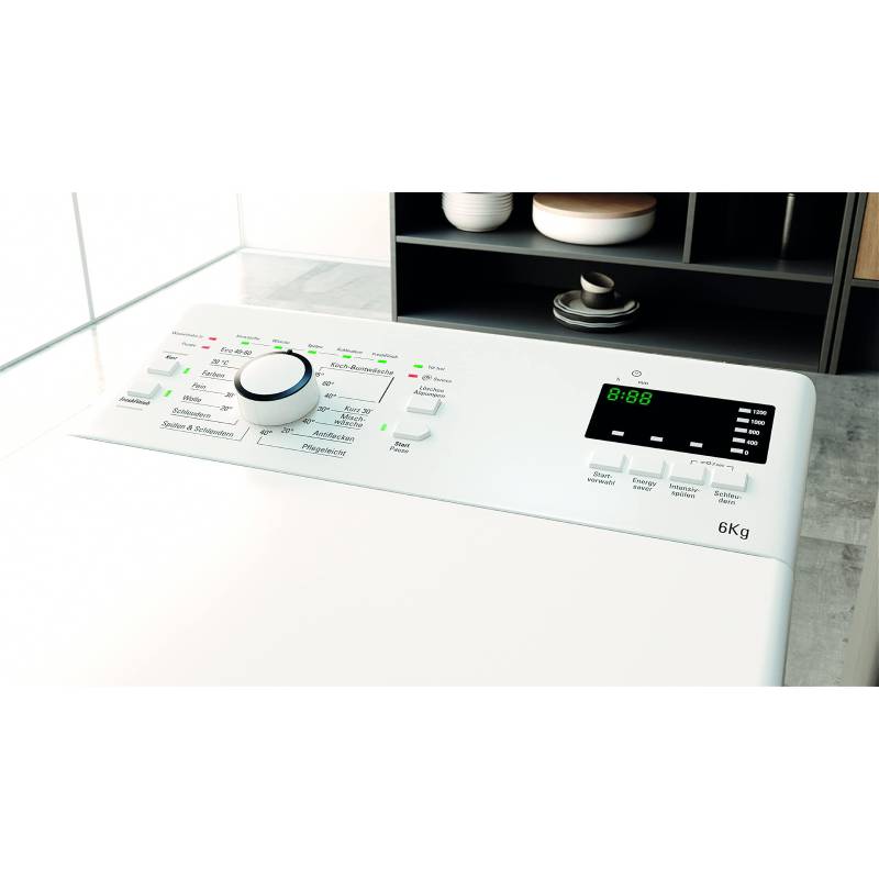 De Bauknecht WAT Smart Eco 12C is een compacte, energiezuinige bovenlader wasmachine met een vulgewicht van 6 kg.