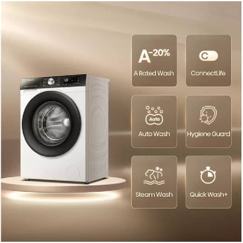 Hygiene Guard: De wasmachine is voorzien van een antibacteriële rubberen deurafdichting om schimmel- en bacterievorming te voorkomen.