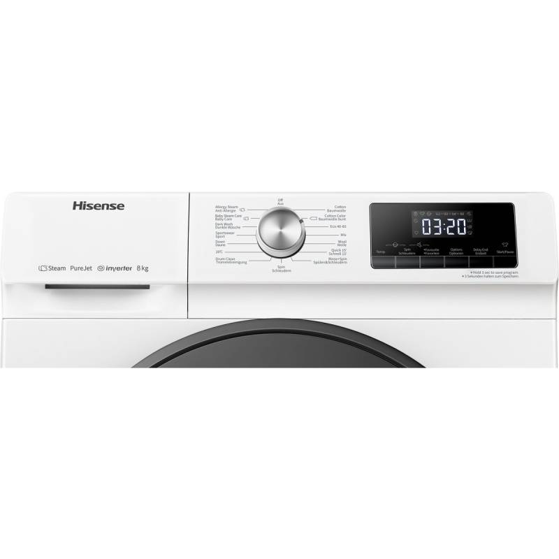 De Hisense WFQA8014EVJM is een energiezuinige (klasse A) vrijstaande voorlader wasmachine met een vulgewicht van 8 kg en een maximaal toerental van 1400 RPM. Het apparaat beschikt over een duurzame Inverter PowerDrive motor en een stoomfunctie voor hygiënische resultaten.